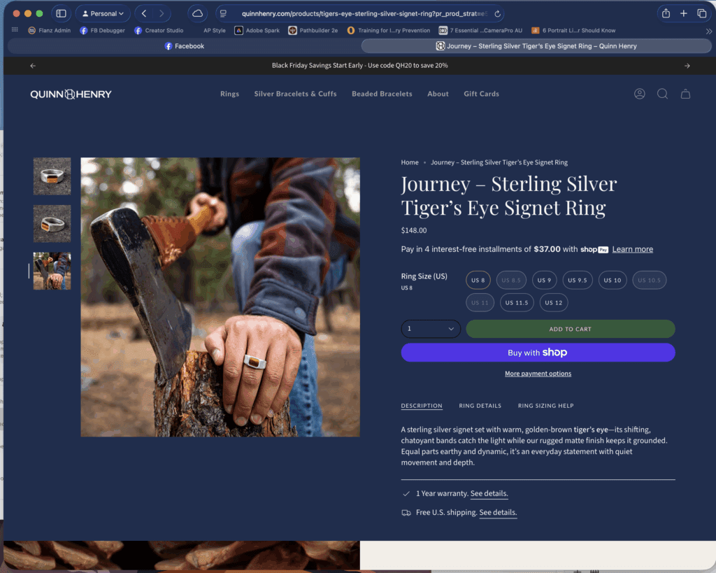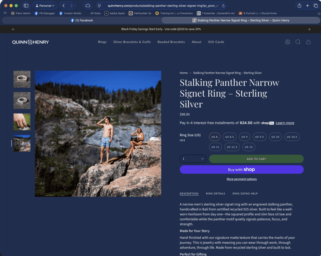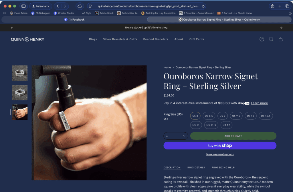 Most jewelry sites rely heavily on macro product shots. Quinn can now showcase lifestyle and identity, giving his brand a clear competitive edge.